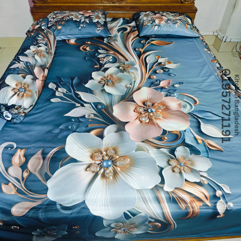B2 Stylish 3d Bed + pillow Cover (Premium Quality ১১০০+ গ্রাম গ্যারান্টি)
