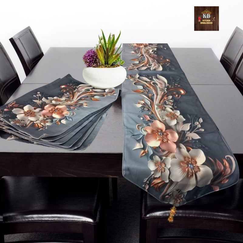 আপনার ঘরের সৌন্দর্য বৃদ্ধিতে আমরা নিয়ে এসেছি  প্রিমিয়াম কোয়ালিটির থ্রিডি  প্রিন্টের " 3D Dining Table Runner + 6p mat "